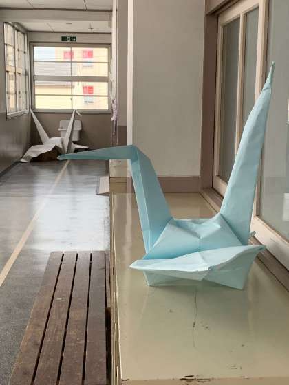 2年生の平和学習折鶴アートです。