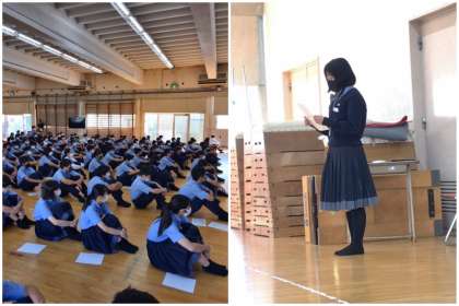1年生から、折り鶴アートは特に心を奪われる作品として選ばれたとのことです。これからも先輩としてこんな風になりたい、と思われるように頑張ってほしいです。