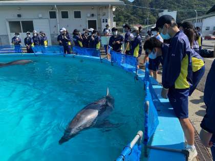 室戸ドルフィンセンターにてイルカトレーナー体験を行なっています。イルカと触れ合い、癒される体験です。
