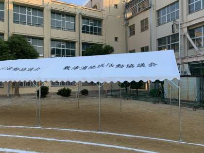 今年度、敷津浦地域活動協議会様より、テントをご提供いただきました。明日の体育大会でお披露目となります。ありがとうございました。