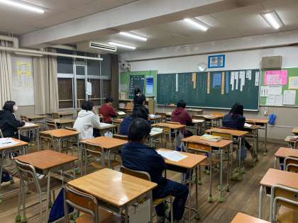 放課後、2年生の教員を中心に模擬授業を行いました。外はすっかり暗くなっていますが、よりよい授業を作り上げるために意見交換を行なっています。