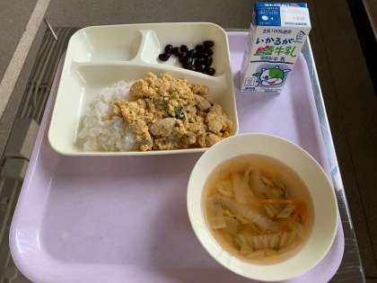 今日の給食には黒豆が提供されています。おせち料理とはちがいあっさりした味付けとなっています。