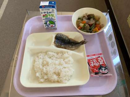 今日は節分の行事献立です。今年は暦のずれの影響で124年ぶりに2月2日が節分となっていますが、本校の給食では今日となりました。