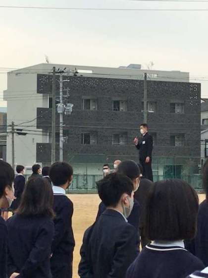 高校受験をするにあたって自己申告書を書く時に中学校生活で何を学び、それを高校でどんなことをしたいかと聞かれた時に今何を書きますか。何が書けますか。3年生には中学校生活で仲間の力があって、大変なことも乗り越えることができたと書いた人がいたそうです。1、2年生もそんなことが書けるような努力をしていって欲しい。