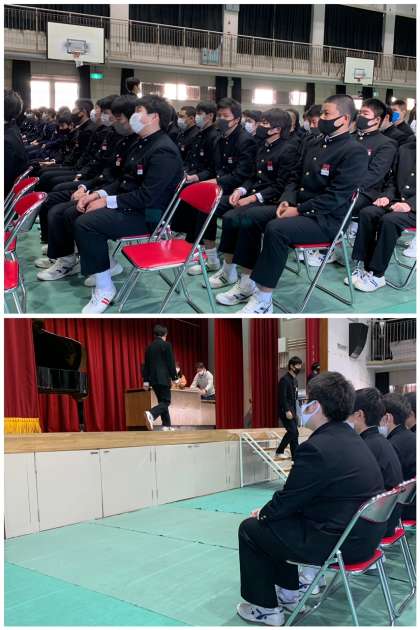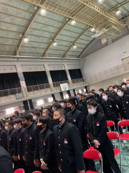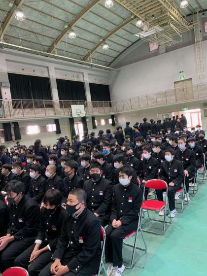 卒業式を明日に控え、今日は予行を行いました。予行ではありますが、担任から名前を呼ばれて大きな声で応える卒業生もおり、式当日のような緊張感を持って参加しています。