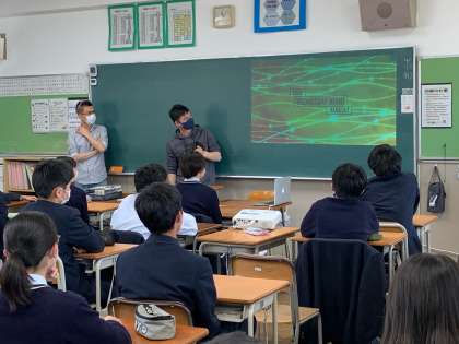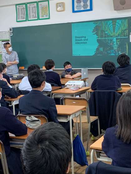 今年度、新しいC-NETの先生が住之江中学校に着任されました。今日は3年生の授業で画像を交えながら自己紹介をしてもらいました。1.2年生のみなさんも校内で出会う機会があれば交流していきましょう。