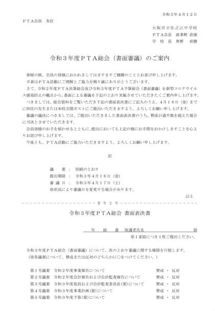 PTA総会(書面審議)について