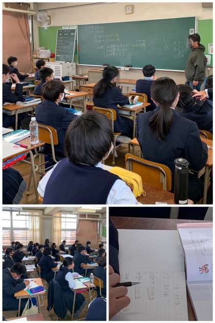英語と数学の授業の様子です。アルファベットや正の数負の数といったそれぞれの教科の一番の基本の内容を学んでいます。