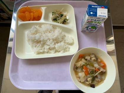 今日、明日は卵の個別対応給食です。卵アレルギーの生徒には、卵を入れる前にとっておいたものを提供します。