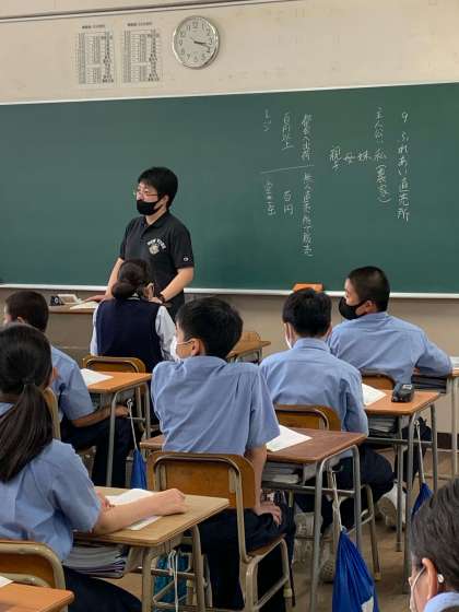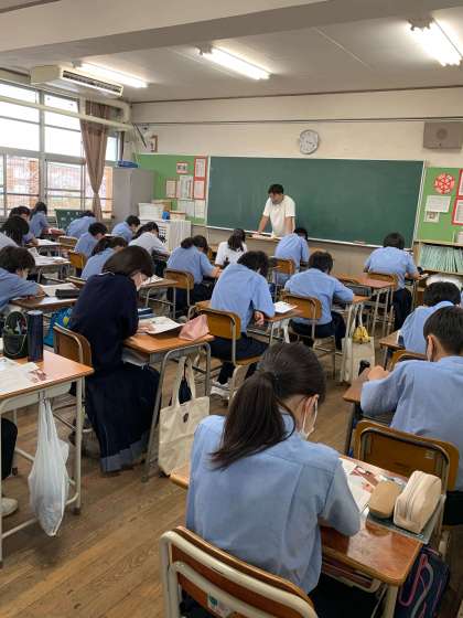 ?1年生の各クラスで、学年の教員で担任、副担任関係なく授業を行いました。4組では『ふれあい直売所』という教材でよりよい社会と私たちをテーマに学習しました。