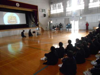 目の前での演奏や作品紹介、さらには映像も使って紹介しました。
