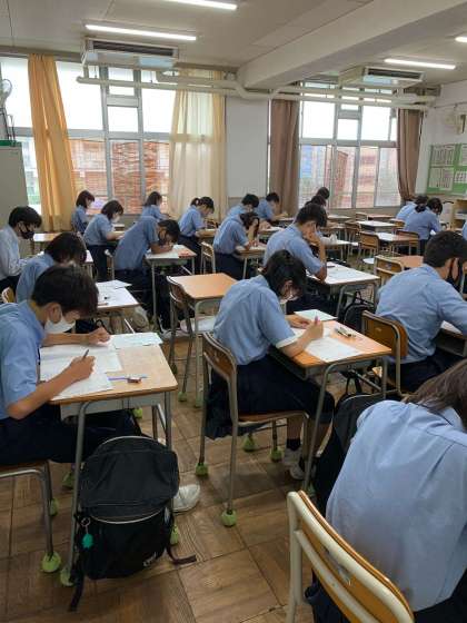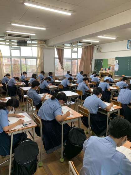 本日、予定通りチャレンジテストを実施しています。現在、5限目の英語のテスト中でリスニングテストに取り組んでいます。