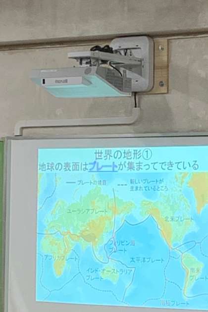 夏休み中、2年生の教室にプロジェクターの設置工事を行いました。これまでは授業ごとにプロジェクターの準備を行なっていましたが、ICT教育を推進していくため、来年度以降他学年の教室も整備する予定です。