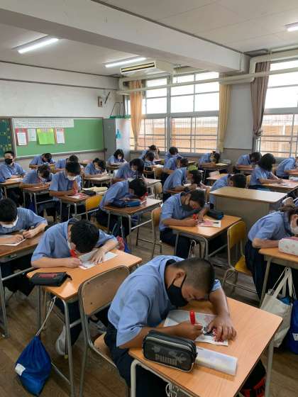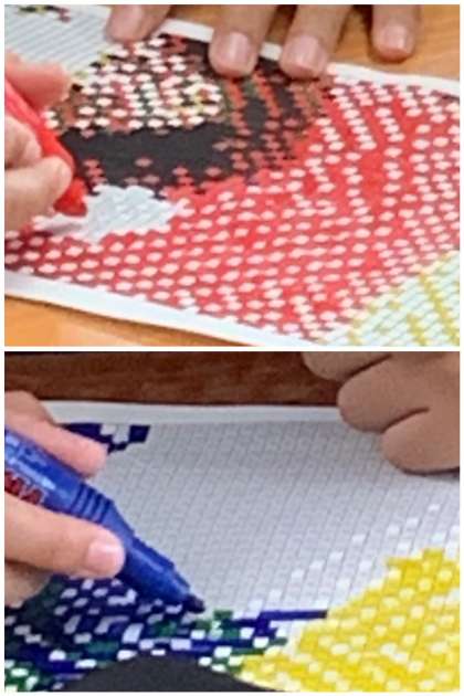1年生では、6限目に学年全体でつくるモザイクアートの作成を行いました。細かい作業の繰り返しですが、みんな集中して取り組んでいます。すべてをつなげた時にどのようになるか楽しみです。
