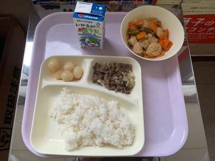 今日の給食 公開日 2021/09/16 更新日 2021/09/16 お知らせ 一口がんもとさといものの味噌煮 牛肉と野菜の炒めもの みたらし団子 米飯 牛乳 今日は月見の行事献立です。 いいね(0)