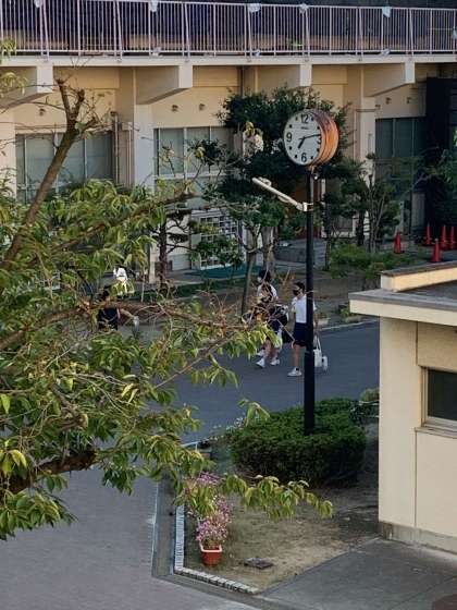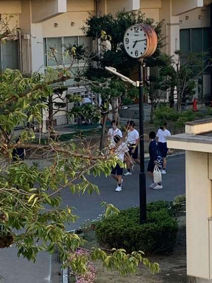7時の登校開始時間をすぎ、3年生が続々と集まってきています。主な荷物は学校に保管していますが、少しの手荷物を持っての登校となっています。