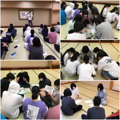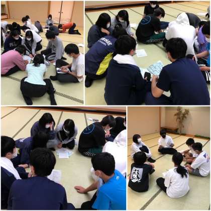 係別会議を終えて、クラスミーティングが始まりました。自分の係で聞いた重要事項を班全員で確認しています。