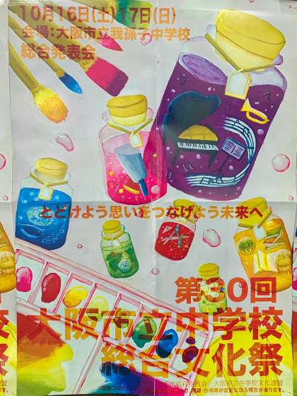 10月16日、17日に我孫子中学校にて大阪市総合文化祭があり、本校の美術部の作品を出品しました。