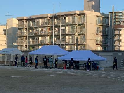 今日も早朝から実行委員会の生徒が職員と協力して最後の準備をしています。絶好の体育大会日和です。