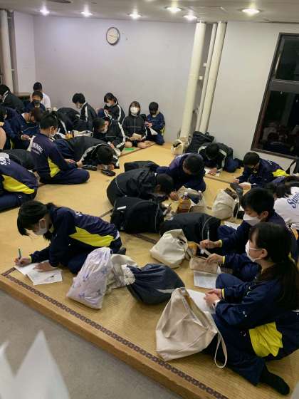 学代を中心に1日のふりかえりを行なっています。2日目の確認もしっかりしています。