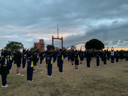 2日目がスタートしました。朝のラジオ体操を行なっています。この後、朝食をとり、荷物の整理や部屋の片付けを行い、2日目の活動を始めます。