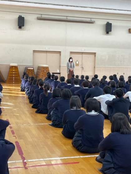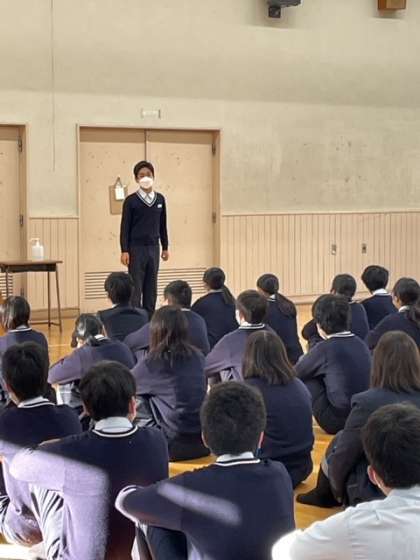 田中先生からは、自らの苦手なことに最近チャレンジした経験から、3年生のみんなにもこれから最大の目標である受験に臨むにあたって苦手な科目の克服にチャレンジしていってほしいというお話がありました。