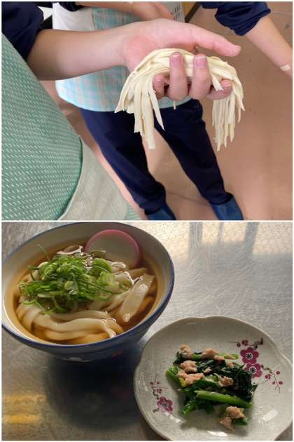 今年最後の活動として、調理実習を行い、讃岐うどんの手打ちにチャレンジしました。こしのある美味しいうどんができたでしょうか。生徒が考えた、ツナを使った和えものといっしょにいただきます。