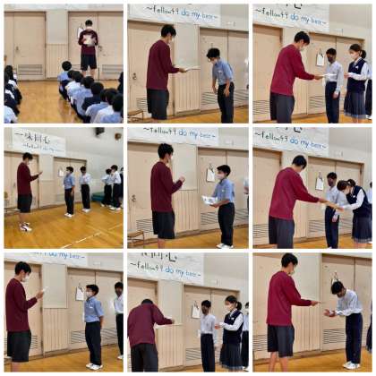 学年集会では、先週行われた一泊移住の表彰が行われました。優勝は5組の5班でした。どの班もよく協力して頑張っていました。