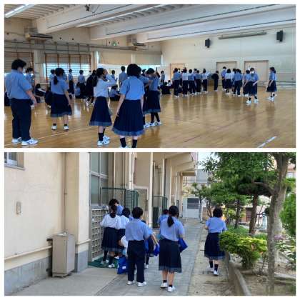 今朝は、1年生の学年集会が行われます。体育館1階には、1年生が集まって来ていました。