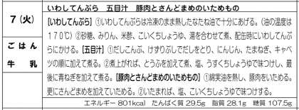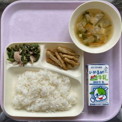 鰯の天ぷら、五目汁、豚肉とさんどまめの炒め物でした。