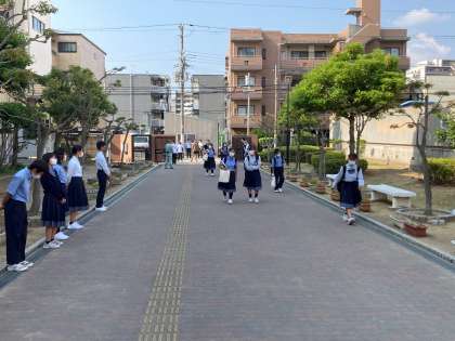 体育大会に向けて、炎天下での練習が行われています。生徒たちは、よく頑張っています。