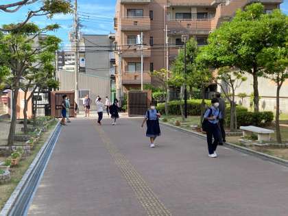 生徒たちの登校は、早いです。8時20分 ぎには、登校する生徒もまばらになっていました。