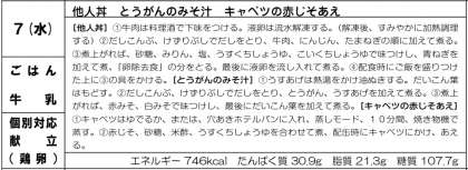 冬瓜のみそ汁とキャベツの赤じそあえでした。