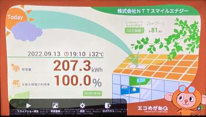 昨日1日で、一人暮らし1ヶ月分の使用量を超える電気を発電しています。