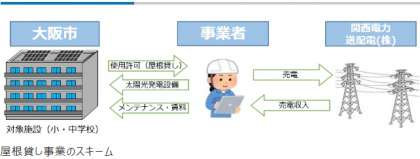 大阪市では、再生可能エネルギーの普及拡大及びエネルギーの安定供給に向けた分散型電源の確保を目的とするため、平成29年度に既存の市設建築物の屋根を目的外使用する大規模(メガワットクラス)太陽光発電事業者を募集いたしました。