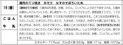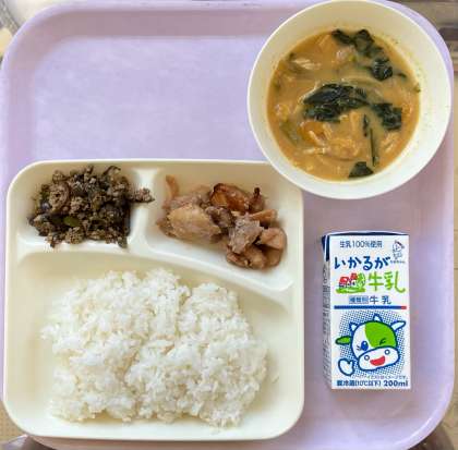 鶏肉の照り焼き、みそ汁とナスのそぼろ炒めでした。