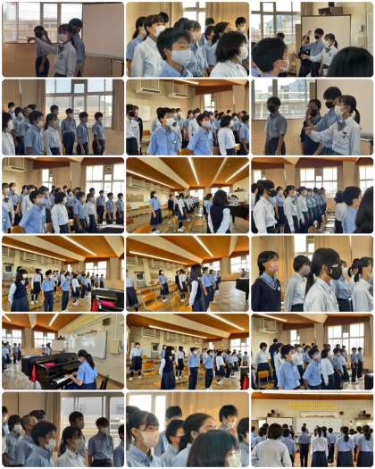 それぞれのクラスては、合唱コンクールのリーダーを中心にリズムや音程を合わせ、強弱をつけて、より上手く響き合うように練習していました。
