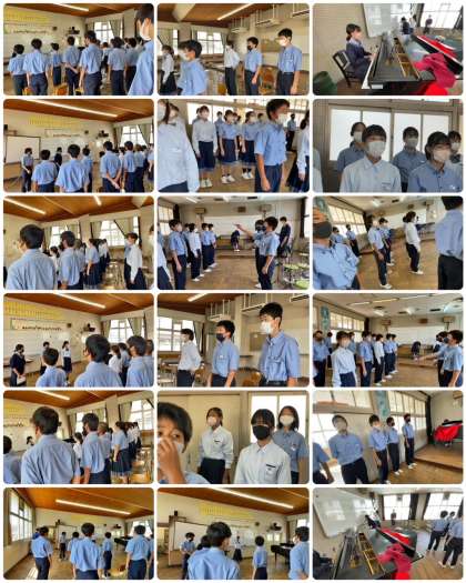 音楽室や体育館、視聴覚室に分かれて練習しました。まだまだ声変わりを終えていない生徒も多く、男性パートは声が小さいという指摘も多くされていました。