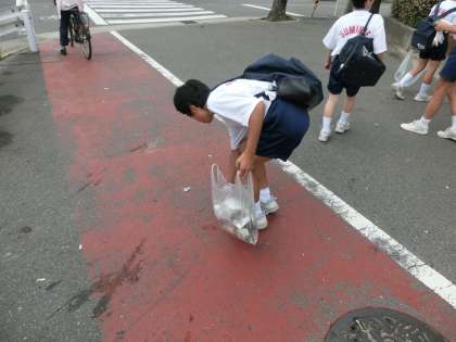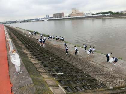 1年生が、地区清掃活動ということで、大和川の土手や公園を分担して、綺麗にゴミ拾いをしました。自分たちの住む町が綺麗になれば、うれしいものです。また、ゴミを拾って綺麗にすると心も綺麗になります。最近、住之江中の生徒のことで、地域の方から褒められることが、増えていますが、褒められるからやるのではなく、自分自身が褒めたくなる自分を作り上げていきましょう。ゴミ拾いも一生懸命やれば、かっこいいものです。