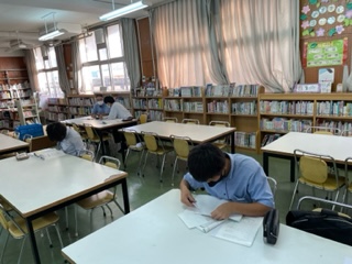 今日は、中3生が来週行われる実力テストや中間テストに向けて、課題などの学習していました。