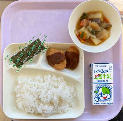 味噌カツ、じゃがいもと野菜の煮物、焼きのりでした。