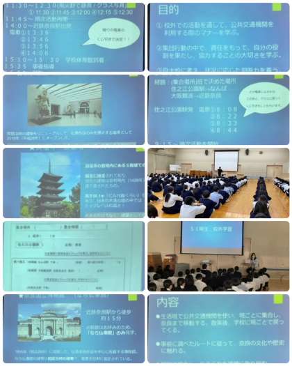 今回の校外学習は自分たちで集合して出発し、各班で決めたポイントを時間通りにまわって帰ってくるという、例年になく高いレベルを求められるものとなっています。これは2年後の修学旅行を見据えて今から自分たちで動くという練習をするためでもあります。