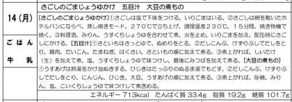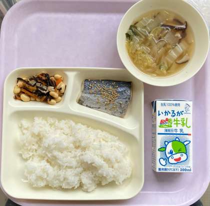 さごしのごま醤油かけ、五目汁と大豆の煮物でした。