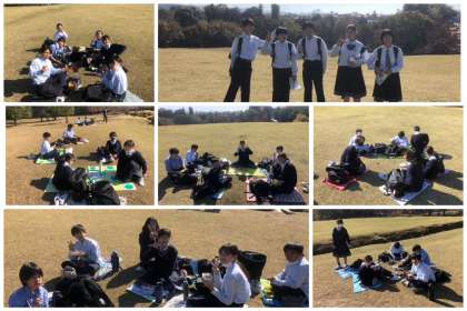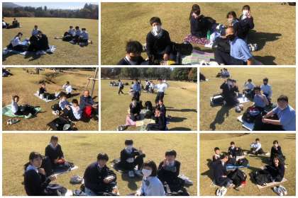 続々と飛火野に到着し、お弁当タイムを楽しんでます。