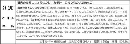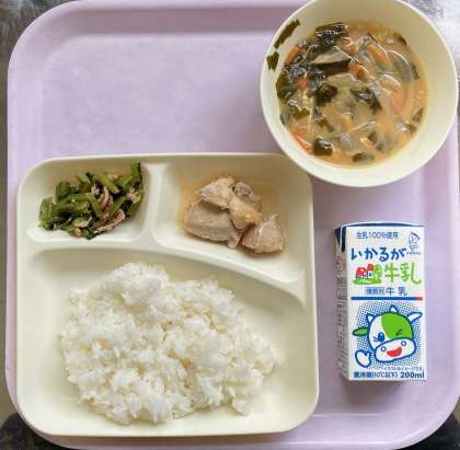 鶏肉のおろし醤油かけ、みそ汁と小松菜の炒め物でした。