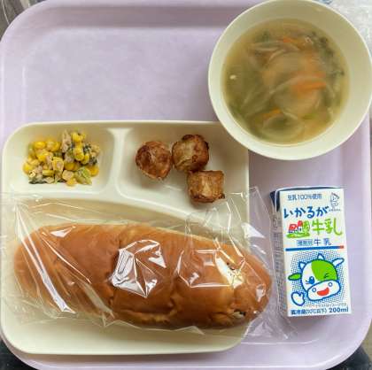 今日は、おさつパンに牛乳。