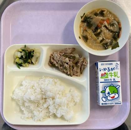 豚肉のゴマだれ焼き、みそ汁、菊菜と白菜のお浸しでした。