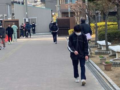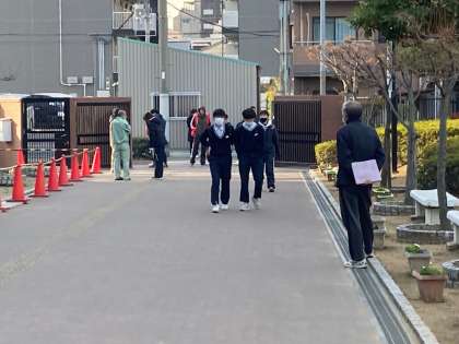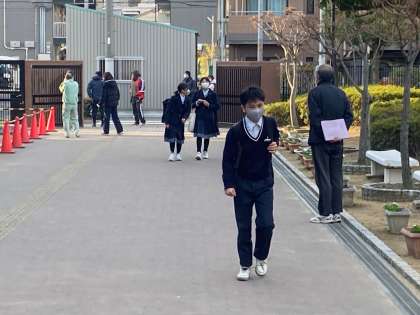 8時18分頃の登校風景です。ほとんどの生徒が登校を終えています。