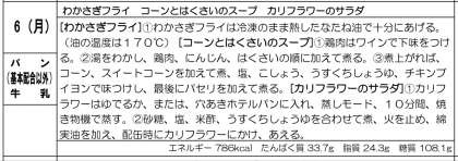 ワカサギフライ、コーンと白菜のスープ、カリフラワーのサラダでした。