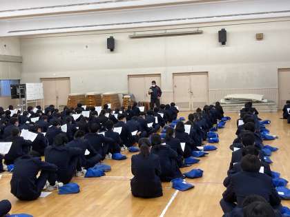 3年生では、明日の私立高校の入学試験に備えて事前指導を行いました。